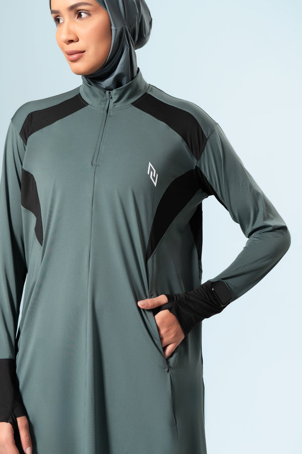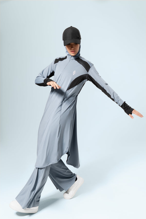 The Unbound Momentum LongLine top redefines modest performance wear. Built for women who require complete shape coverage, this gym-ready longline top delivers lightweight breathability, sweat-wicking performance, and ventilation panels without compromising modesty. Its extended abaya-inspired cut with an adjustable waist offers freedom of movement, sleek style, and total confidence whether in the gym or on the move.