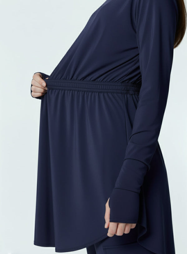 This is where elegance meets performance. The Pro-Active Top is a masterpiece of modest sportswear design. With batwing sleeves that double as chest coverage and a chic style statement, a flowing semi-circle skirt that flatters every move, and sweat-wicking fabric that keeps you fresh it’s a top that makes modesty feel powerful, stylish, and unstoppable. More than activewear, this is the crown jewel of your wardrobe.